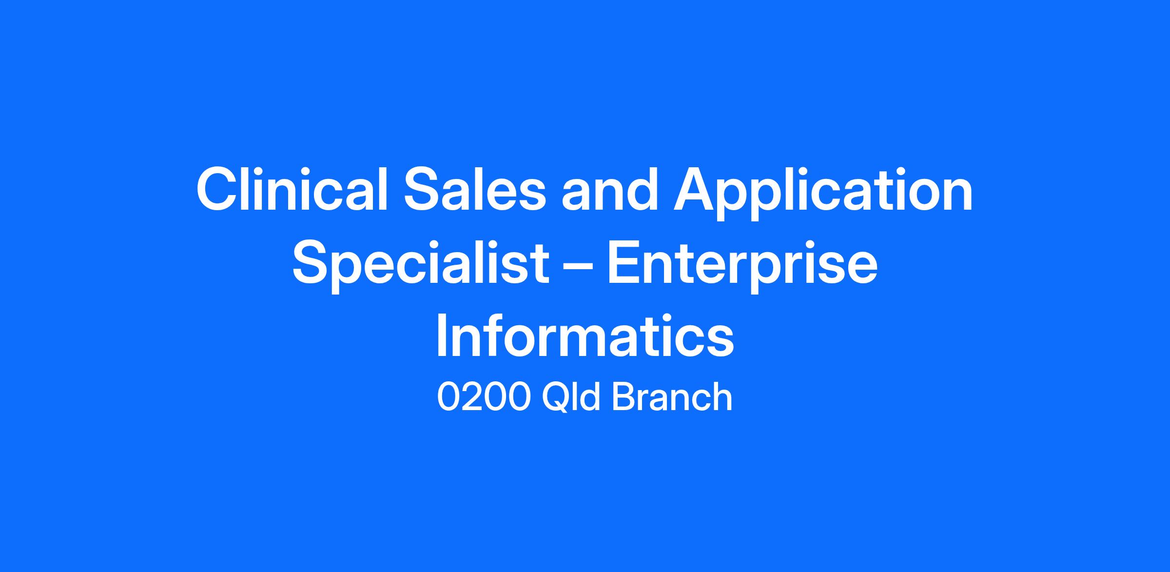 Clinical Sales and Application Specialist – Enterprise Informatics