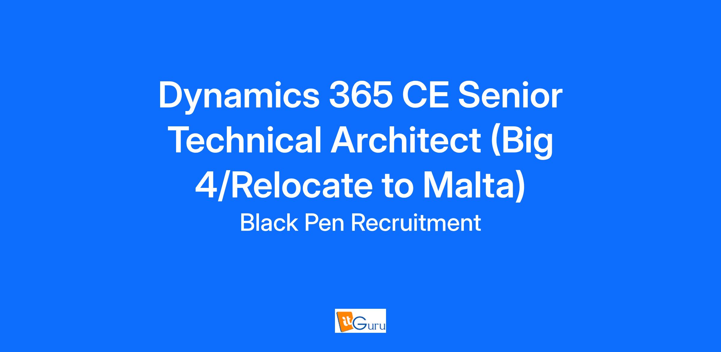 Dynamics 365 CE Senior Technical Architect (Big 4/Relocate to Malta)