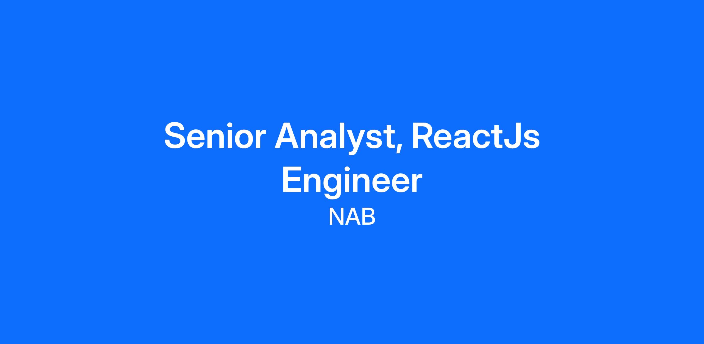 We are seeking motivated Senior Frontend Engineers (ReactJs) who are passionate, results-focused to take accountability for the design and delivery of Microservices that will be used by banking front end applications. You will be part of our delivery team and will be responsible for providing technical leadership throughout all phases of the software delivery life cycle as we initiate a transformation of NAB technology.